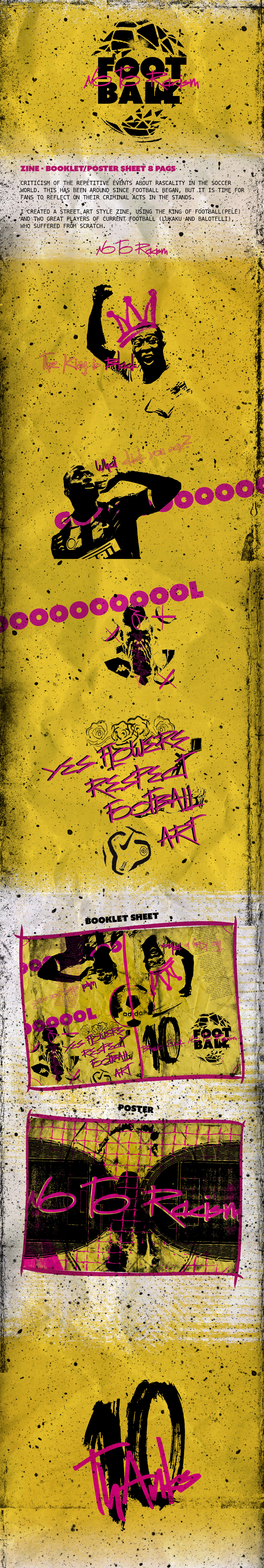 Zine - Booklet/Poster sheet 8 pags Independent project, developed for reflection on the bad acts of football fans around the world. Underground and street art style. Format: A3 - Booklet Sheet 8pgs Front side: Content Back side: Poster No To Racism